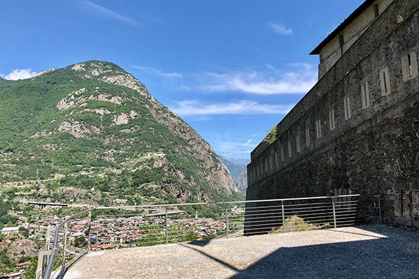 Visiting the Bard Fort has been enhanced with new spaces: the La Corniche Promenade and the e-bike path, created as part of the Italian-Swiss Alps cycle route project, are now accessible to the public. The work has led to the creation of a new visitor route to the fortress, with significant geo-environmental and historical value. The route is located close to the Fort’s walls on the southwest side, in a panoramic position overlooking the Dora Baltea valley. The La Corniche Promenade, connected to the e-bike route from the village, winds between the ramparts and slabs of bare rock that surround the Fort, as well as some pre-existing stonework structures, evidence of old military outposts once used to defend the site.