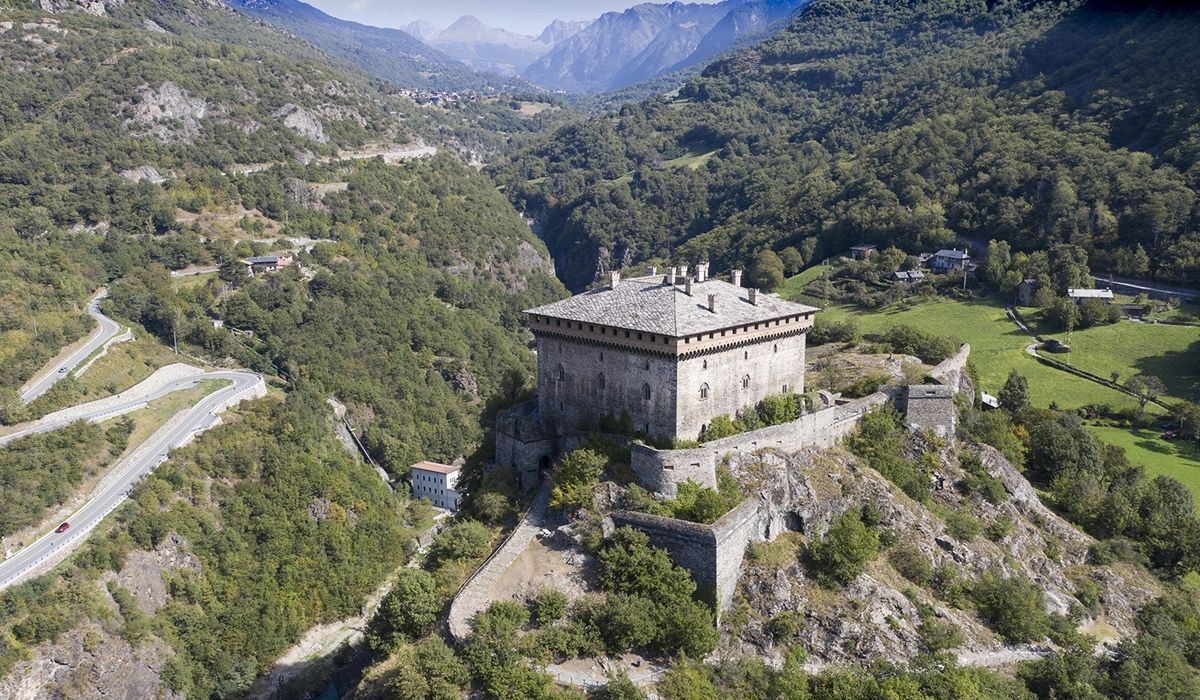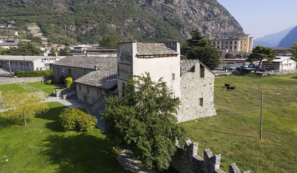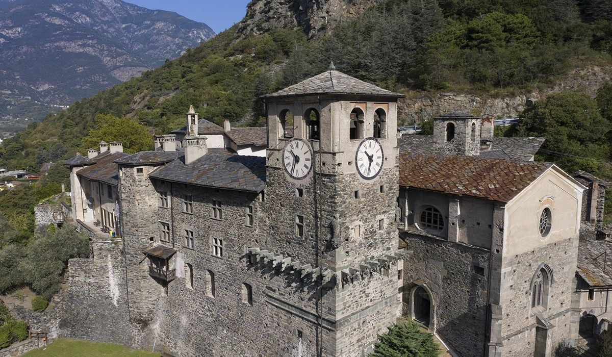 Built on the request of Ibleto of Challant in around 1390, the castle is a fine example of a feudal fortress. The tremendous structure of this enormous cube of stone (30 metres per side) is softened by mullioned windows and cross-windows, arched doorways, the monumental staircase and gigantic chimneys.