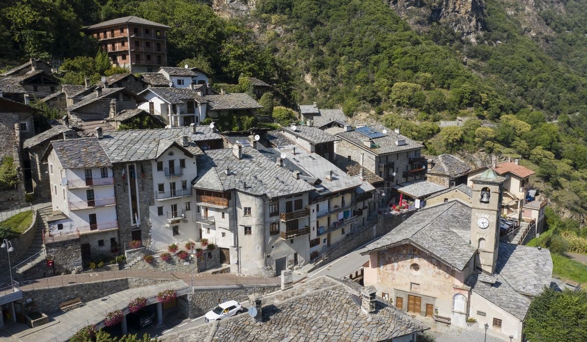 Perloz (660 m.) est un petit village accroché au flanc de la montagne, à l’entrée de la Vallée de Gressoney.Il est entouré de châtaigneraies et de vergers et bénéficie d’une position très ensoleillée. Le bourg possède deux demeures ayant appartenu aux seigneurs de Vallaise et ornées de fenêtres à croisée et des armoiries familiales ; la première se trouve à l’extrémité du village, la seconde au centre. Un autre édifice intéressant est l’église paroissiale du Saint-Sauveur, construite au début du XVIIe siècle.