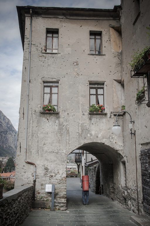 La naissance du bourg médiéval peut être associée à la constitution d’une unité homogène avec l’appareil défensif sur l’éperon où se trouve la Forteresse primitive. Probablement, le bourg possédait des murs d’enceinte, deux portes d’accès, l’une à l’Est et l’autre à l’Ouest ; il n’y a que quelques traces de la première tandis que la seconde existe encore aujourd’ hui et elle coïncide avec l’arc de la Maison Nicole. Il est en tout cas certain qu’à l’époque du siège de Napoléon, les deux portes avaient un pont-levis.