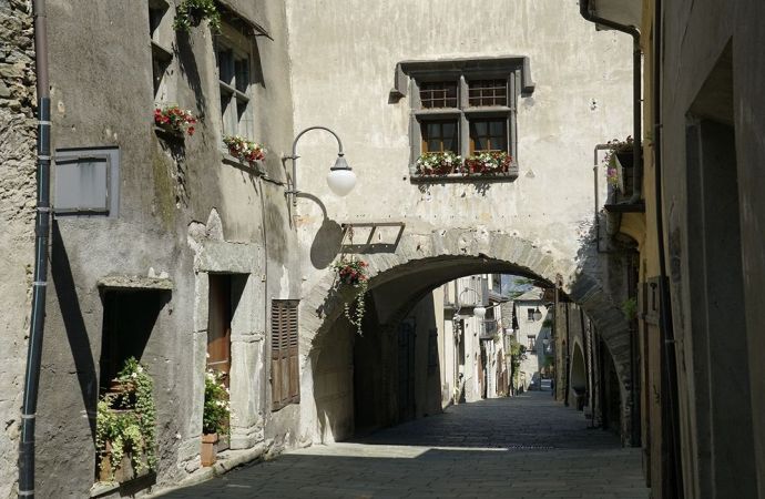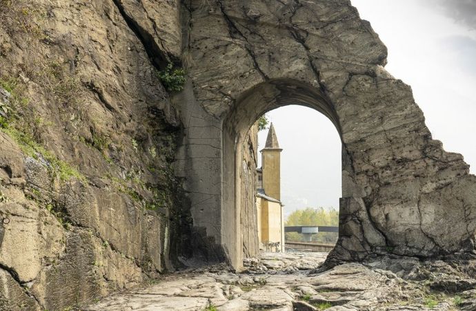 Il percorso è un itinerario-panoramico-culturale che consente di scoprire lungo un unico anello le principali peculiarità storiche e paesaggistiche di Pont-Saint-Martin. Partendo dalla rampa d’accesso al Ponte Romano, tappa al museo dedicato al Ponte che raccoglie materiale illustrativo sulla costruzione e sugli interventi di restauro realizzati nel corso del tempo. Proseguendo, si sale alla piazzetta San Giacomo dove sorgeva la Chiesetta omonima, spazzata via, con la maggior parte degli edifici circostanti, dal bombardamento del 23 Agosto 1944. Di lì la scaletta che sale si inerpica tra i terrazzamenti sino al Castello Baraing, punto panoramico sul centro storico e sulla piana circostante. Il castello non è visitabile ed è sede dell’Unité des Communes Mont Rose. Scendendo s’incontra l’antica mulattiera per Perloz, in località Fontaney, dove è situata l’antica Chiesa, fatta costruire da Pietro di Vallaise ala fine del XVI secolo. Risalendo via Chanoux, a metà strada tra le due piazze del centro storico, alle spalle del Municipio, sorge ‘l Castel, antica Casaforte dei Signori locali. Il percorso prosegue sulla passerella sul Lys e si conclude nel verde dei Giardini Pubblici.