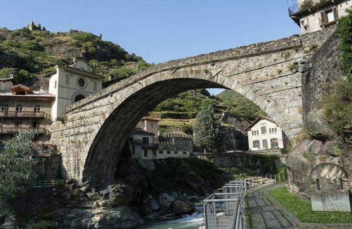 E’ il principale centro della Bassa Valle d’Aosta e dà il suo benvenuto al visitatore all’ingresso della regione. Posto a 6 km dal Forte di Bard, Pont-Saint-Martin è un vivace paese di quattromila abitanti che si sviluppa attorno al suo principale monumento e simbolo: lo spettacolare ponte romano, testimonianza della romanizzazione della Valle d’Aosta, risalente al 25 a.C. Ancorato alla viva roccia da entrambi i lati, solca le acque del torrente Lys ed è alto 25 metri; la sua unica arcata è larga 35 metri.