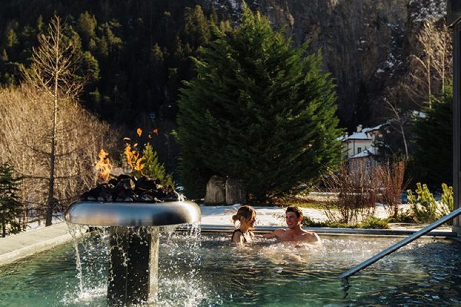 Il percorso termale si articola tra oltre 40 pratiche: cascate tonificanti, idromassaggi, saune-chalet di legno in cui ritrovare tutti i profumi alpini, stanze del sale, percorsi Kneipp, docce Vichy e sale relax panoramiche, per una totale remise en forme. Remineralizzante, tonificante ed emolliente: l’acqua termale di QC Terme Pré Saint Didier sgorga, naturalmente calda, dal cuore della montagna e si arricchisce nel suo percorso di preziosi minerali.